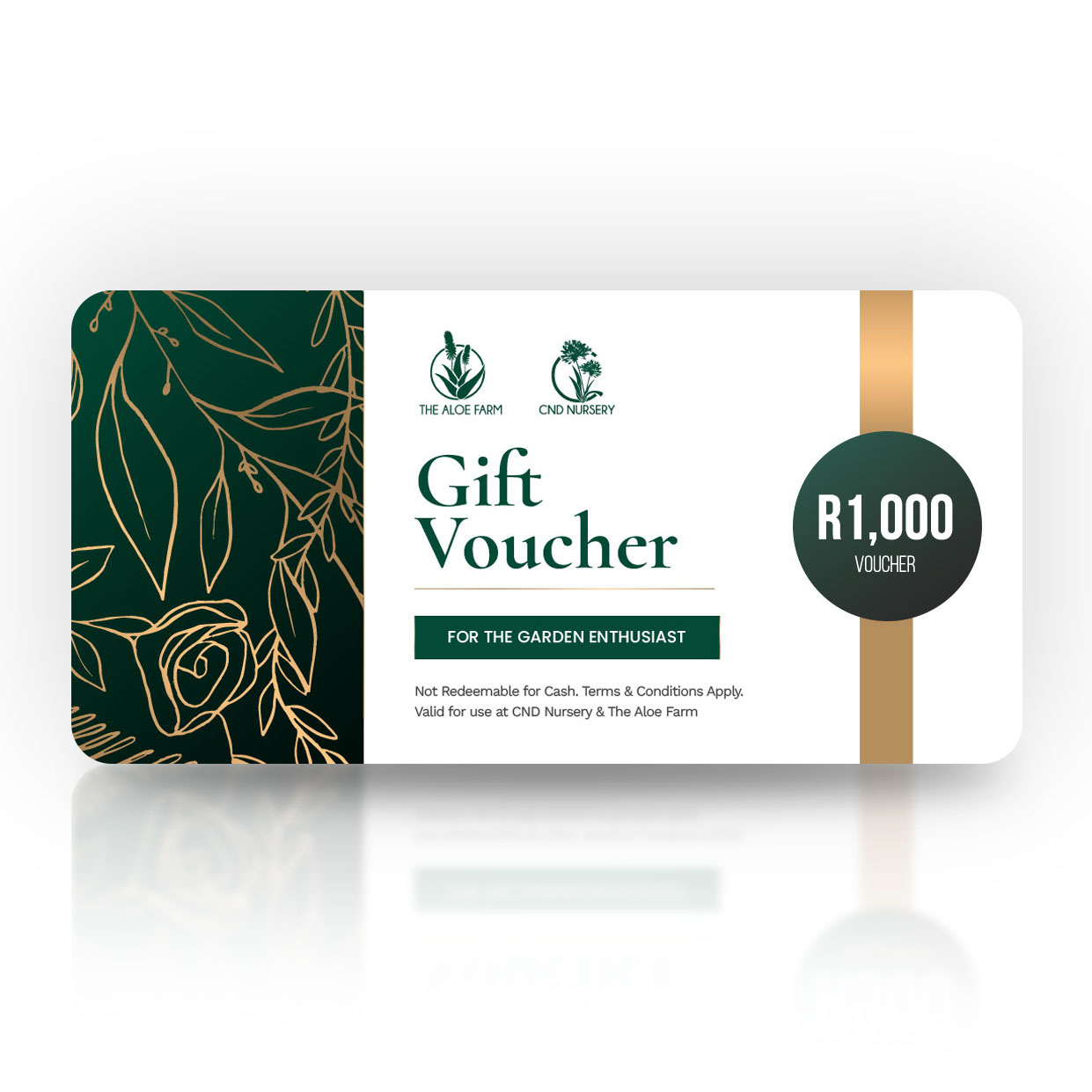 Valid for 36 months. Redeemable at CND Nursery & The Aloe Farm. Not redeemable for cash. Non-refundable. Remaining balance may be used on future purchases. Terms & Conditions apply.